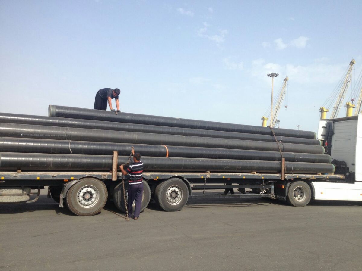 2016年9月2日我司承接内蒙古包钢钢联股份有限公司无缝钢管运输项目,该批钢管由中国天津港运至土库曼斯坦阿巴德。 钢材属于重货,由于钢材品种繁多、用途广泛。不同的品种有其特性,一般在运输过程中依据其断面形状的不同进行分类运输。在钢材运输前,必须把钢材分类用钢丝绳捆扎好,这需要先检查钢丝绳是否达到报废标准,如存在明显的残损或达到报废标准,必须马上更换。以确保钢材捆扎结实、安全。用吊车直接把钢材起吊至货车上,在装卸工人挂钩的过程中,需再次检查钢材有无散捆、变形,捆扎的钢丝绳是否有开裂现象。由于钢材属于重大件运输,在运输过程中,司机应注意如遇不熟悉的路况时,小心慢行,特别是货物在超长或超宽的情况下,